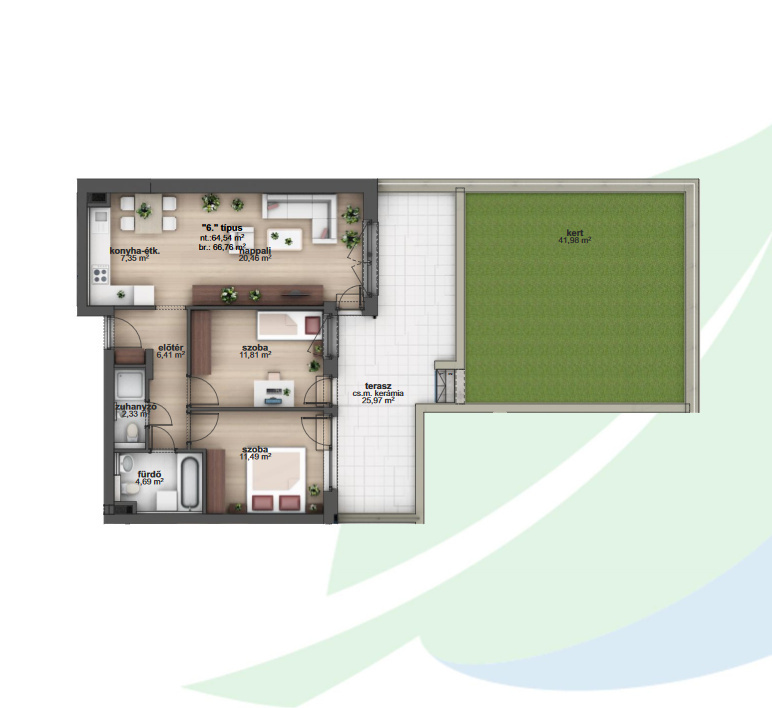 * Saját kert: 42 m² (zárt, kizárólagos használatú)
