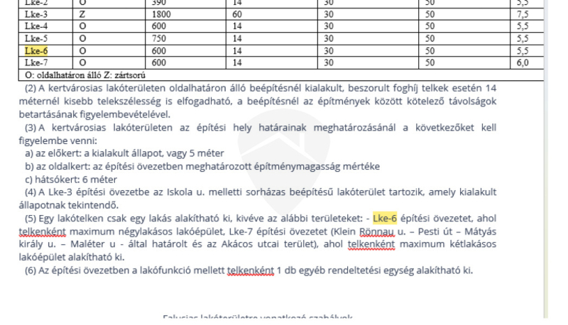 A Fővárosi Vízművek \\\"Elvi hozzájárulása\\\" alapján az Lke-6 besorolás mellett is csak 1 db családi ház építése lehetséges.