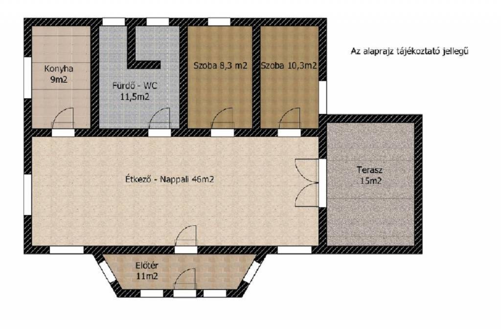 A házhoz tartozik egy 15m2-es terasz, ami a nappaliból nyílik.
