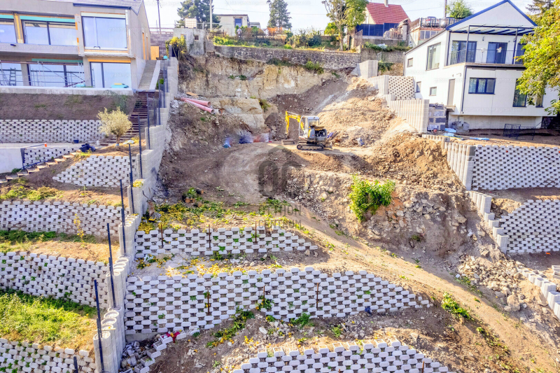 A támfalak kiépítéséhez kapcsolódó munkák, illetve a lépcsőzetes kialakítás megkezdődött.