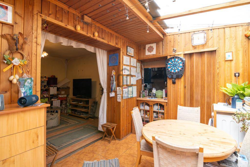 Az ingatlanban 2 szoba, nappali étkezővel, fürdő, WC, konyha, kamra és dolgozó rész lett kialakítva.