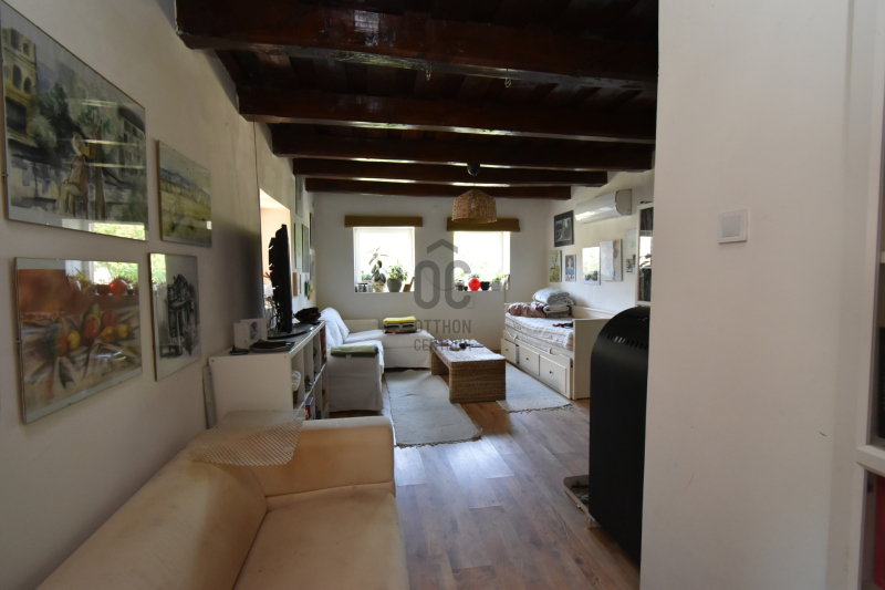 - A felújított parasztház igazi éke, a nappaliban található gerendás mennyezet.