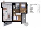 ✅ Kialakítása modern, elosztása logikus, a nappali északnyugati, a szobák északkeleti tájolásúak.