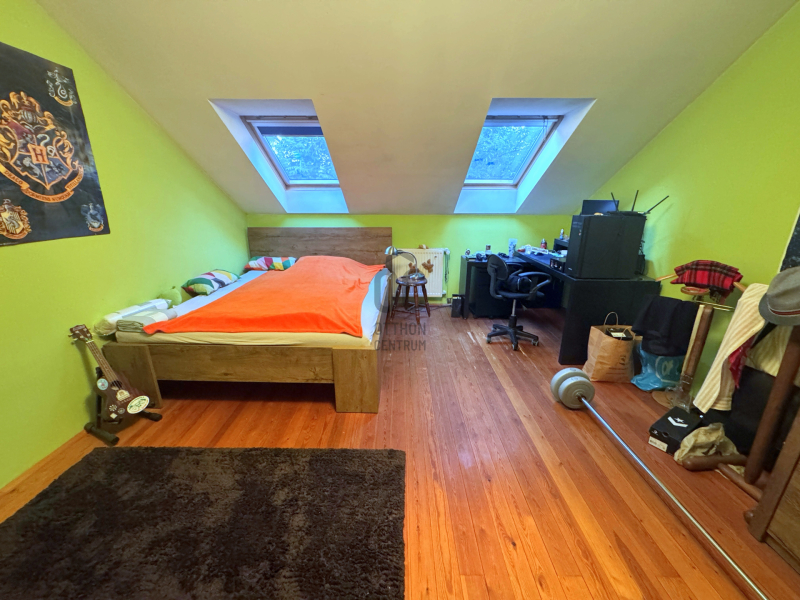 + A masszív fa lépcsőn felérve egy tágas amerikai konyhás nappaliba érsz, amiből még 3 hálószoba, egy erkély és egy nagyobb fürdőszoba is nyílik, amibe kád és zuhanyzó is bekerült.