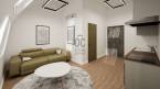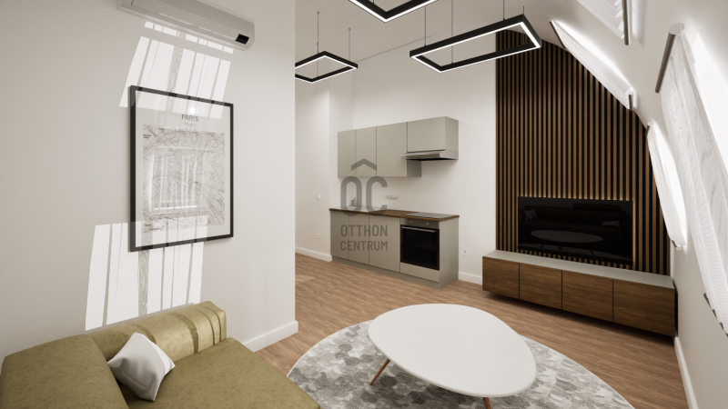 – A tetőtérben a fotókon látható, jelenlegi egy légterű tágas térben további 7+1 db új lakás kerül kialakításra.