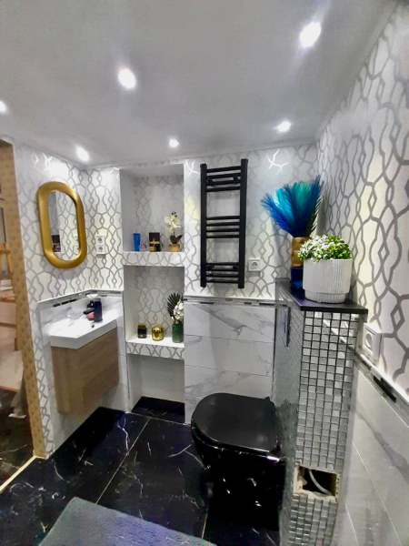 Frissen felújított szerkezeti és esztétikai elemek: Teljes körű gépészeti megújulás (új villany- és vízvezetékek), prémium burkolatok, vadonatúj bútorzat.