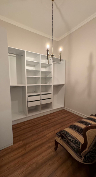 A lakásban kialakítottak egy külön gardrób szobát ami akár még vendég elszállásolására is alkalmas lehet.