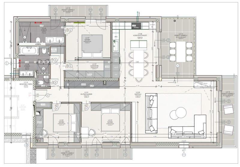 ✅ Praktikus közlekedők és tárolók – A tárolóhelyek elhelyezése hatékony, segítve a rendezettség fenntartását. Az előszoba és egyéb tárolók megfelelő méretűek, így a kabátok, cipők, táskák is könnyen rendszerezhetők.