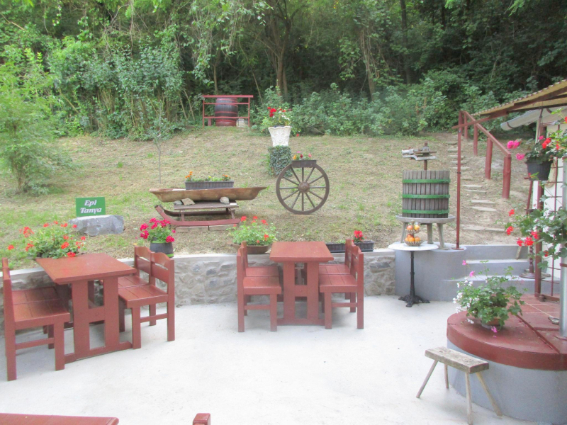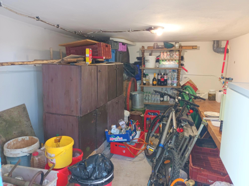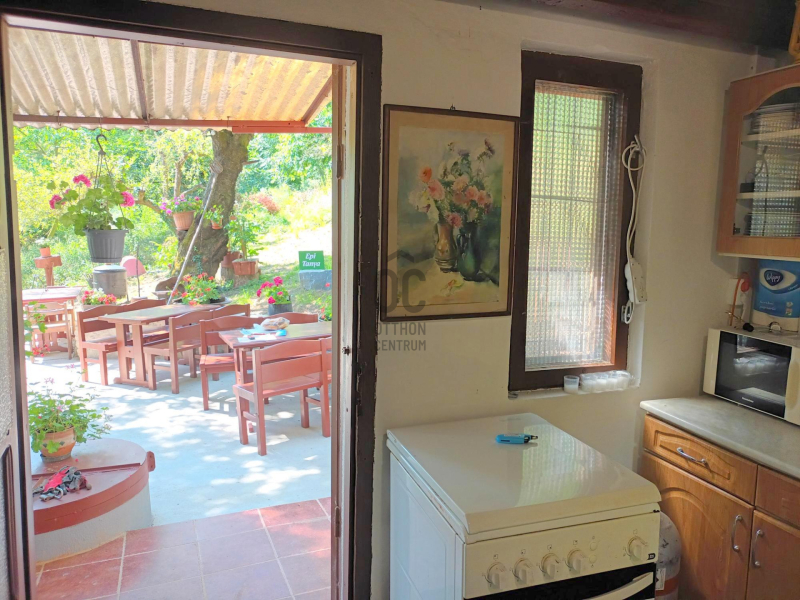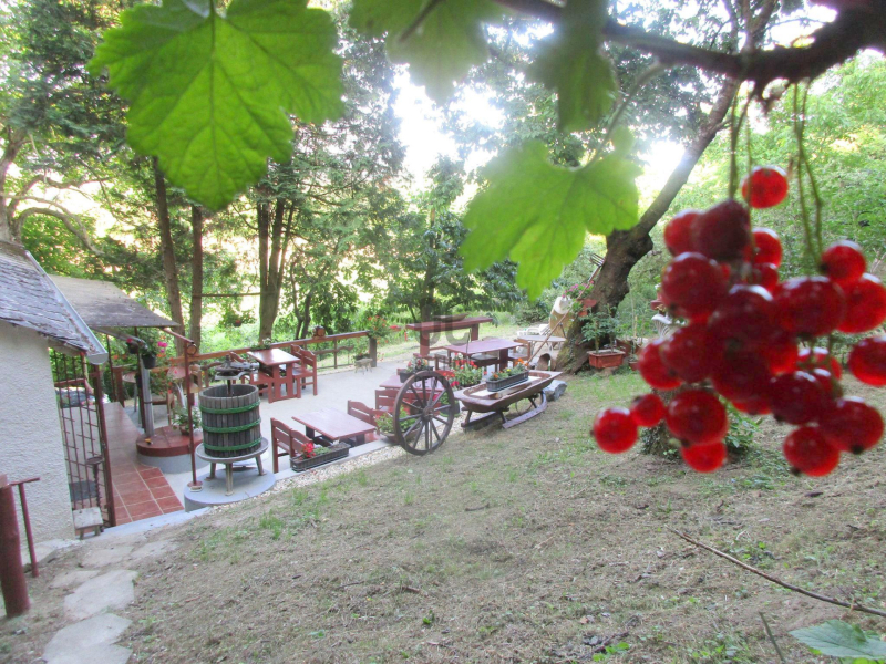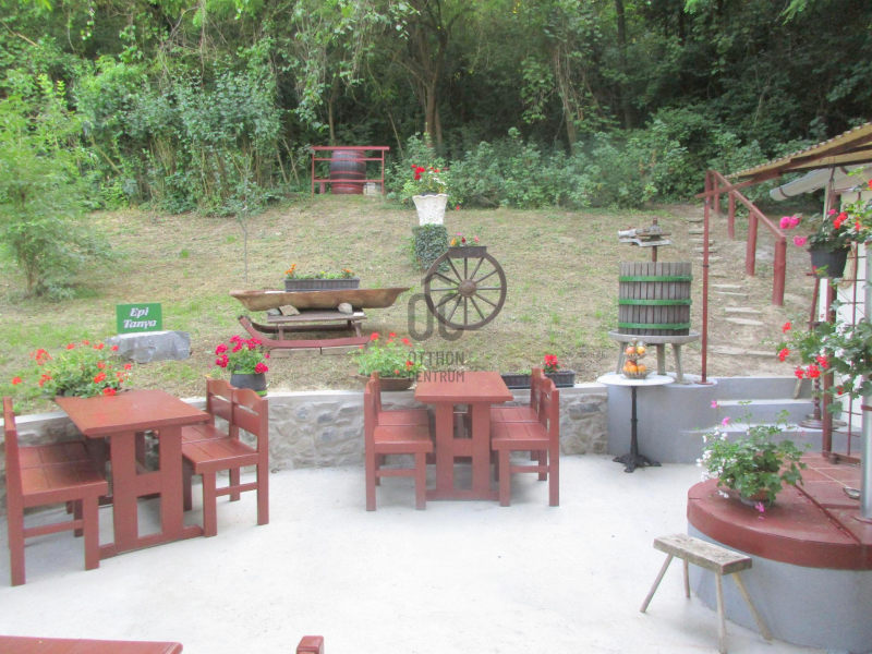 Az elmúlt időkben a házikó felújításra került, új víz- és szennyvízrendszer került kiépítésre, a villamosenergia-hálózat is megújult. Az épületben lent egy 12,59 nm-es borospincét találunk, a fenti részen 7,68 nm-es konyhát, 1,46 nm-es Wc-kézmosó helyiséget, 11,69 nm-es szobát, 2,7 nm-es tusolót, illetve a ház előtt a birtok legkellemesebb részét, egy rendkívül praktikus, 60 négyzetméteres, betonozott nyitott teraszt. Mesés panoráma tárul elénk a keleti tájolású területről.