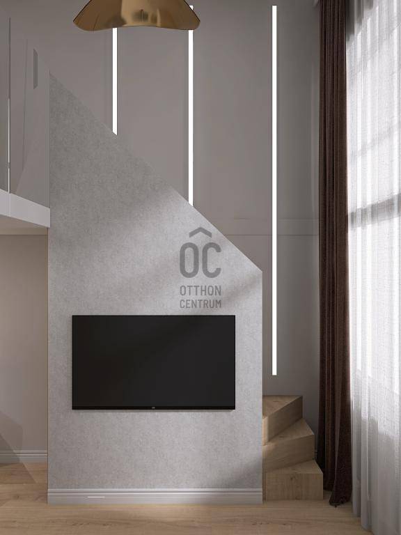 A lakás utcára néz, világos, magas belmagasságának köszönhetően 2 szintes az ingatlan. A felső szinten lévő hálórész 16 m2.
