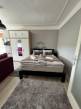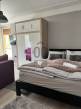 A 20 m2-es szobában a nagyméretű franciaágy mellett kényelmes sarokkanapénak is van helye.