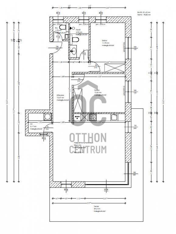 - A hatalmas nappalihoz L alakban, 29 m2-es terasz kapcsolódik.