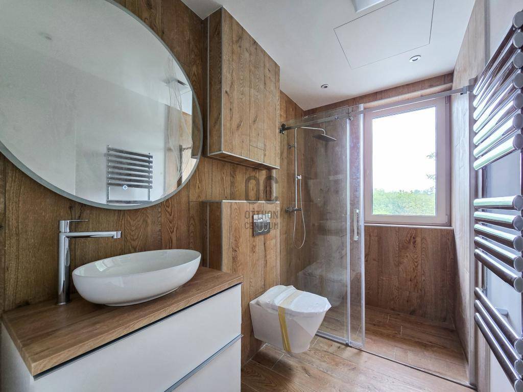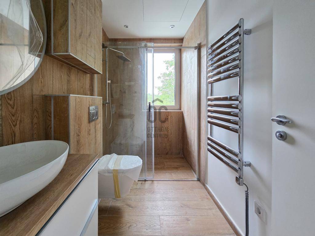 - A fürdőszoba zuhanyzós és itt kapott helyet a toalett is.