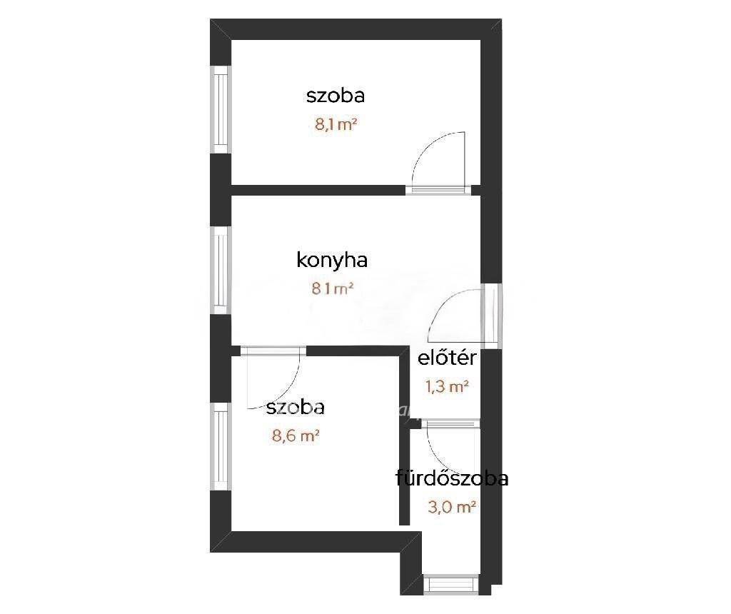 2 félszoba, 1előszoba-konyha, 1 fürdőszoba, 1 külön WC található benne.