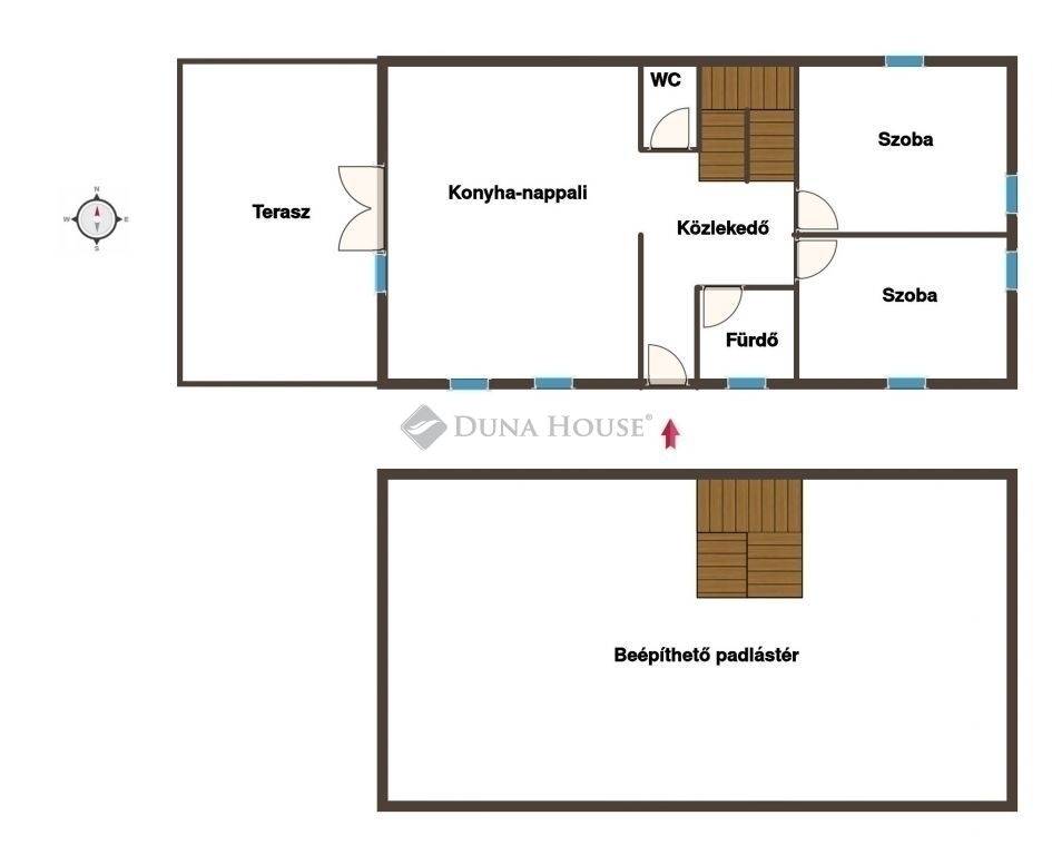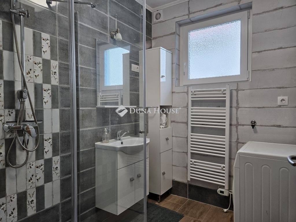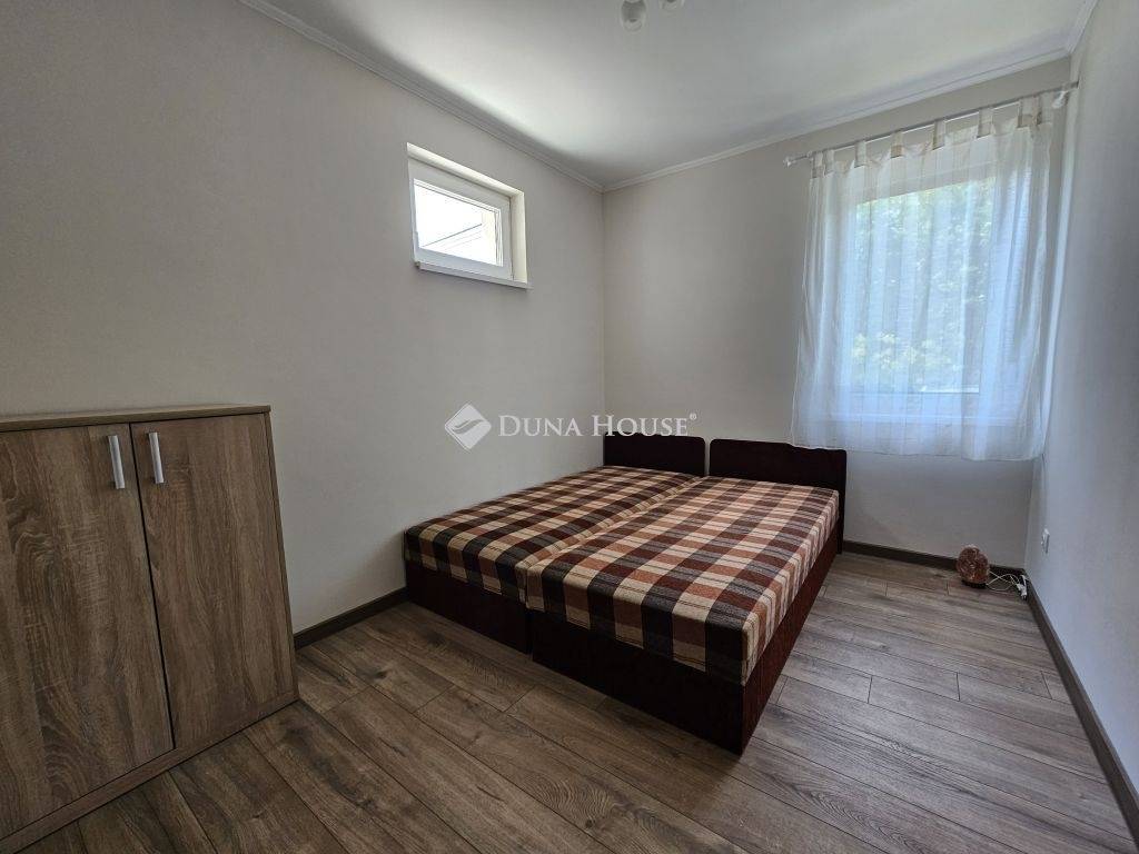 Orfűn a Pécsi tóhoz és a központhoz közel, egy csendes utcában eladó 1/1 tulajdonú 2020-ban épült, sosem lakott (gyakorlatilag új) családi ház. A ház két szintes, a földszint teljesen beépített a következő helységekkel: nappali-konyha, fürdő, külön wc, egy tároló/gépészeti helység, közlekedő lépcsőházzal és két szobával. A tetőtér 1m magas térdfallal készült jól beépíthető kialakításban, a 3db oromfalon 2-2db ablakkal ellátva. Az emelet hasznos alapterülete 52 négyzetméter (59m2 beépíthető). A ház összesen kb.120 lakható négyzetméterrel rendelkezik. Az udvar 420 négyzetméteres, nagyobb része teljesen vízszintes, további része egy támfalt követően emelkedik. Hátul burkolt 36 négyzetméteres terasz található, az épület körül burkolt járda készült. Épületszerkezet: 30cm Porotherm Klíma tégla + 8cm EPS szigeteléssel készült falak, vasalt felbetonnal ellátott E-gerendás vasbeton födém, vasbeton lépcső. Műanyag ablakok 3 rétegű üveggel TROCAL tokkal, alumínium redőnnyel és szúnyoghálóval ellátva készültek (teraszajtónál motoros redőny). Napcella 4,2kW (szaldós), villanybekötés: 3x16A, új víz és szennyvízrákötés készült az építés során, a telek gázcsonkkal is rendelkezik. A lakrész padlófűtéssel ellátott, jelenleg villanykazánnal fűtve, de ez kicserélhető split rendszerű hőszivattyúra, melynek védőcsövezése elő van készítve az épületben. További kérdés esetén hívjon bizalommal.