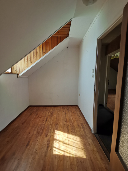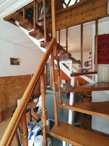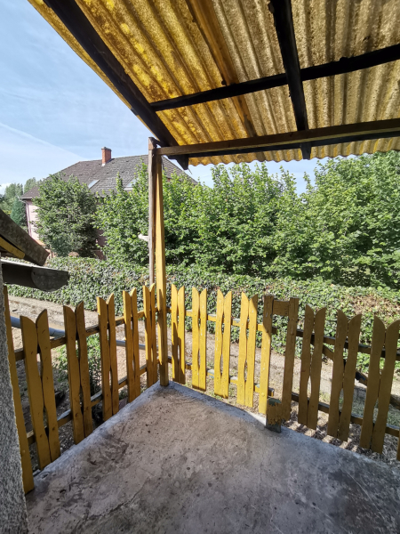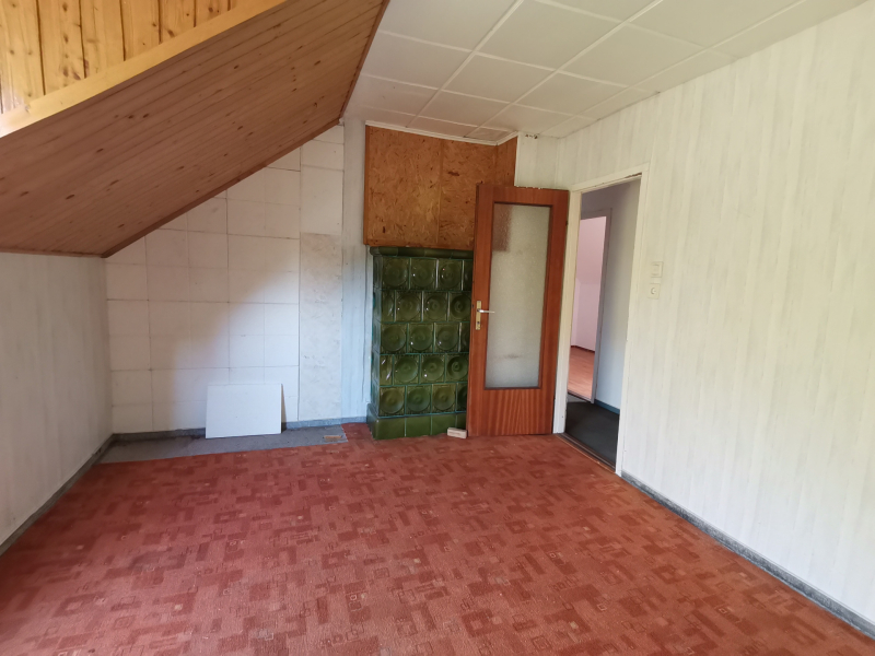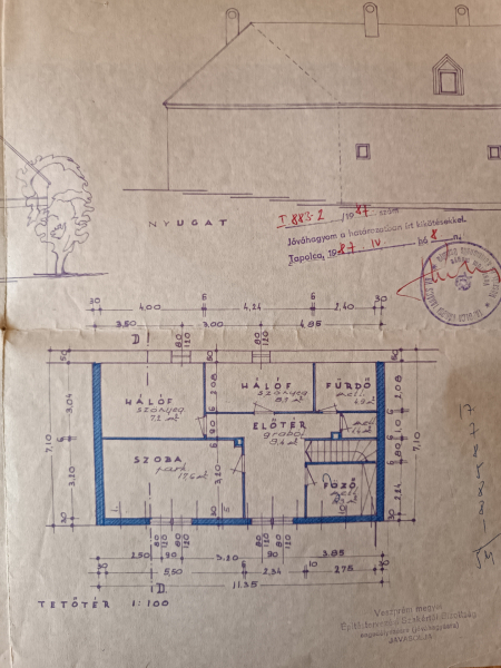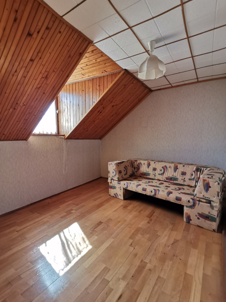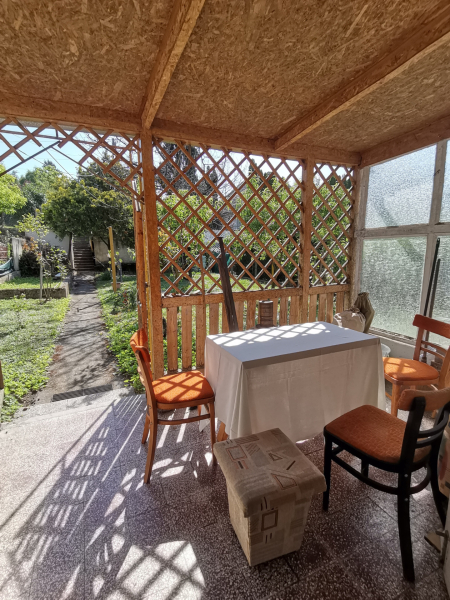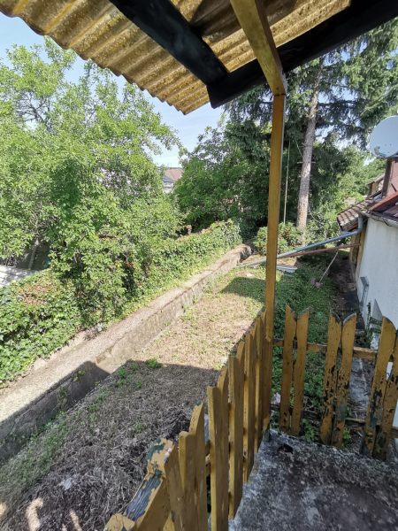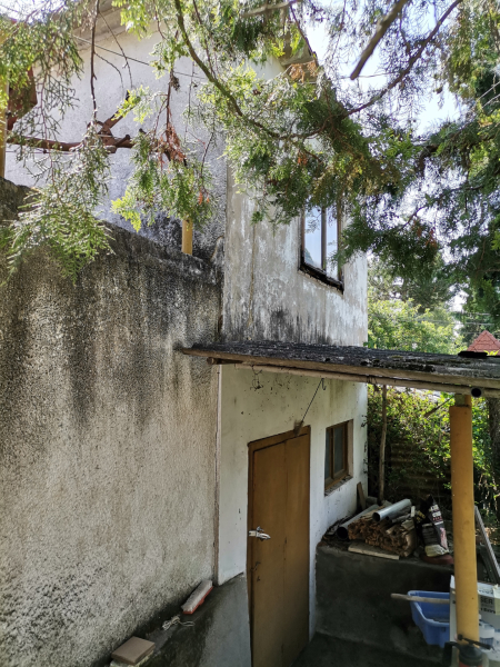 1985-ben emeleti ráépítés történt, ez a lakószint tégla falazatú, a tető palával fedett. Szerencsére sem ázás, sem egyéb gond itt nem mutatkozik, a tér nagyon jó elosztású! Itt 3 hálószoba, egy kis konyha és fürdőszoba lett elhelyezve. A legnagyobb szobának terasza nyílik a hátsó frontra (másnak ide nem nyílik rálátása), itt a hegy felől érkező csapadékvíz elvezető árka van (betonozott), amely mostanában már nemigen szállít nagy mennyiségű csapadékvizet.