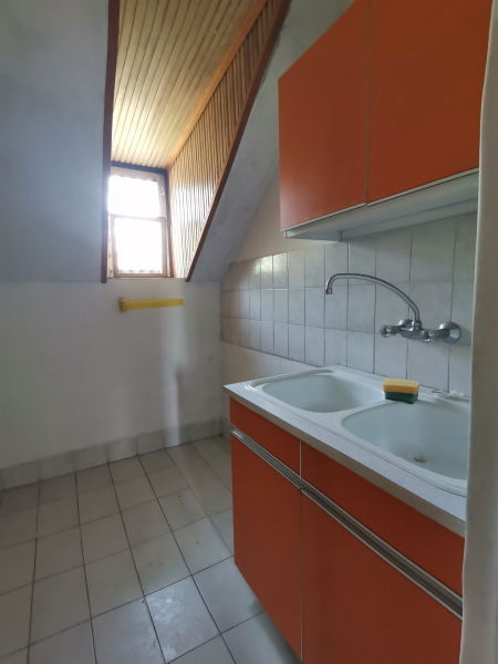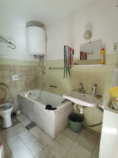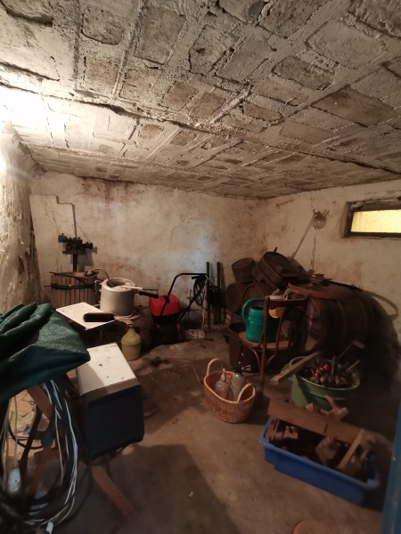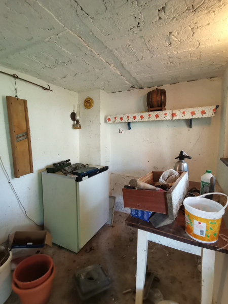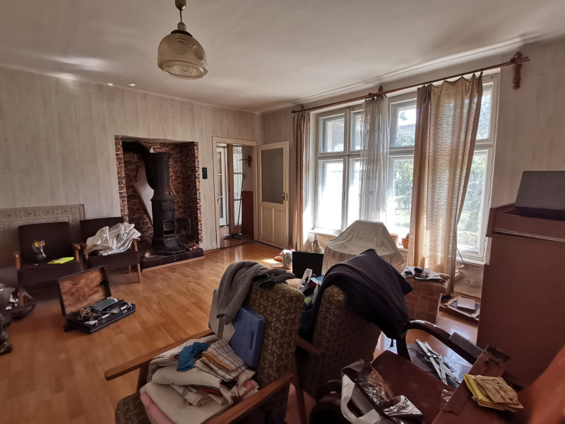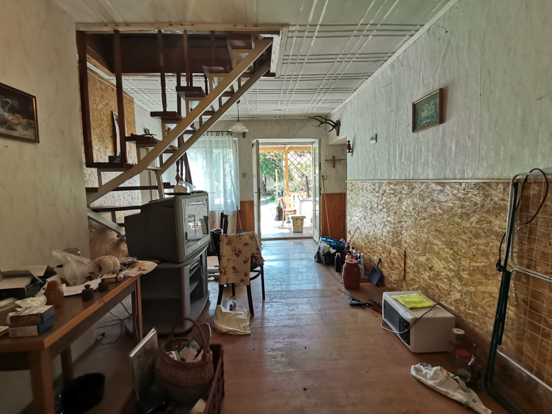 Az épület régi uradalmi munkáslakás volt. Az alsó szint vastag kő falazatú, hátsó fala 1,5 méter mélyen a föld színe alatt van, ezért megoldandó a vízszigetelés, a falakon vizesedés látszódik az elmúlt tél óta, amikor már nem lakták, nem fűtötték. Fűtését egyébként kályha és cserépkályha biztosította. (Gáz az utcában elérhető, az épületbe nincsen bekötve) A földszinti rész nagy hallból, hatalmas nappaliból, konyhából, kamrából és fürdőszobából áll. Az ingatlannak zárt emésztője van, de az utcán elérhető a közmű és rácsatlakoztatható az épület.