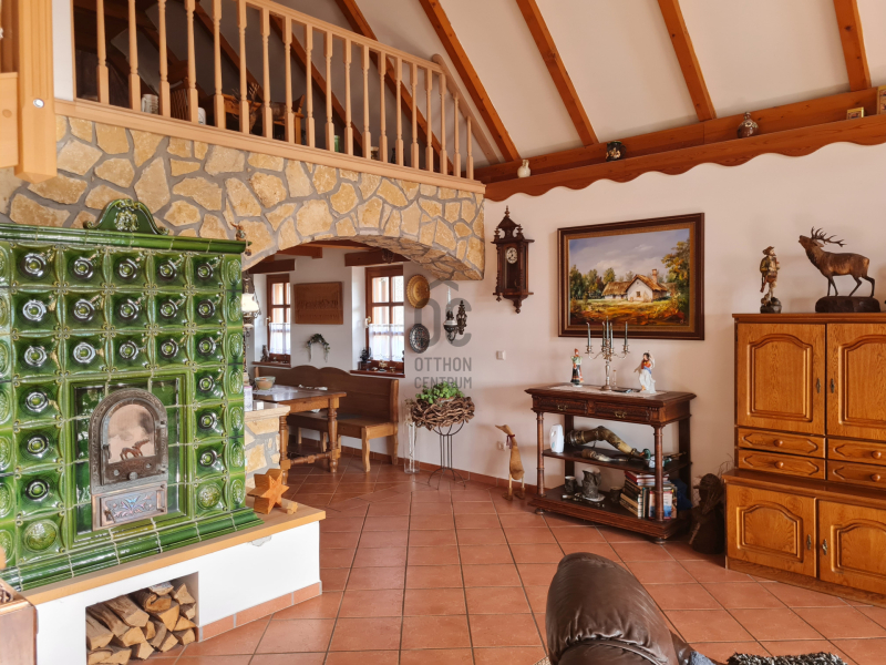 Fűtése kombi-Vaillant kazánnal történik, melyet egy gyönyörűen rakott cserépkályha egészít ki a nappaliban.