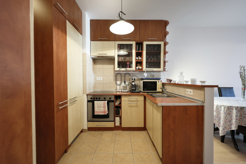 - háztartási gépekkel felszerelt, praktikus kialakítású konyha, amely rengeteg tárolási lehetőséget biztosít.