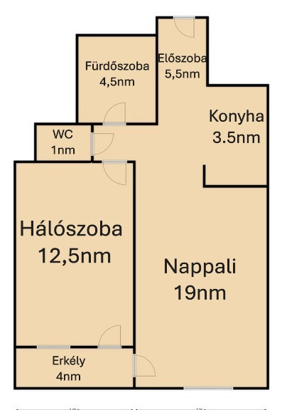 - 46 nm + 4 nm erkély, K-i fekvésű.