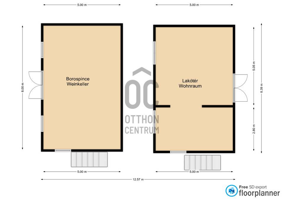 -Az alsó szinten téglaboltíves pince, az emeleten 2 tágas helyiség van.