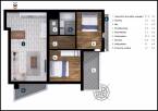 Kialakítása modern, elosztása logikus, a nappali északnyugati, a szobák északkeleti tájolásúak.