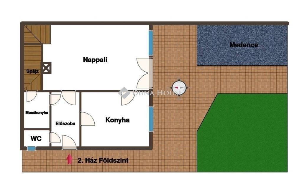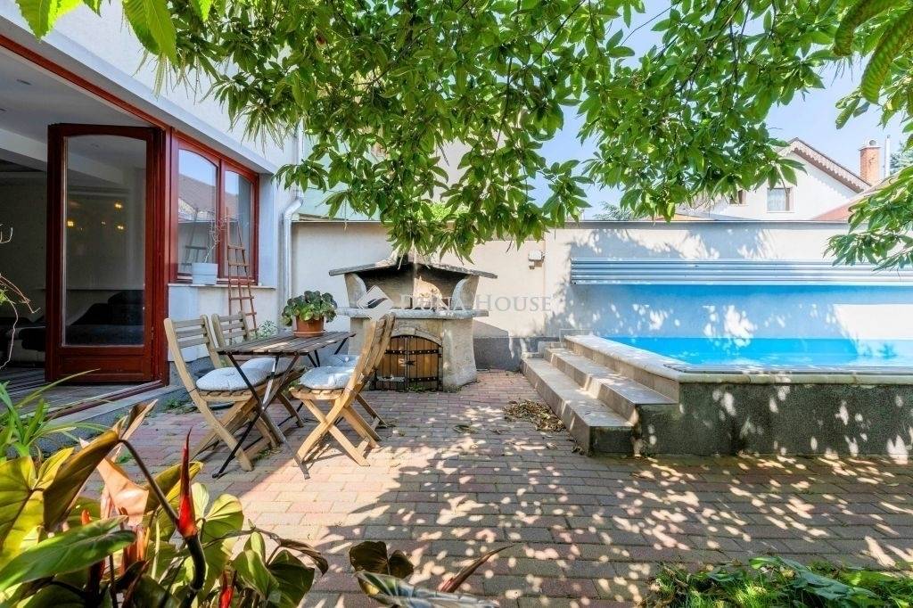 hőszivattyúval fűtött, fedett medencéhez. A telken ez a hátsó épület, mely az utcáról