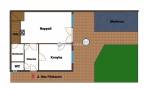hibátlan állapotban és fából van, a fürdőszoba egyedi dizájnt mutat. A nappaliból