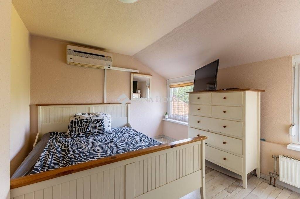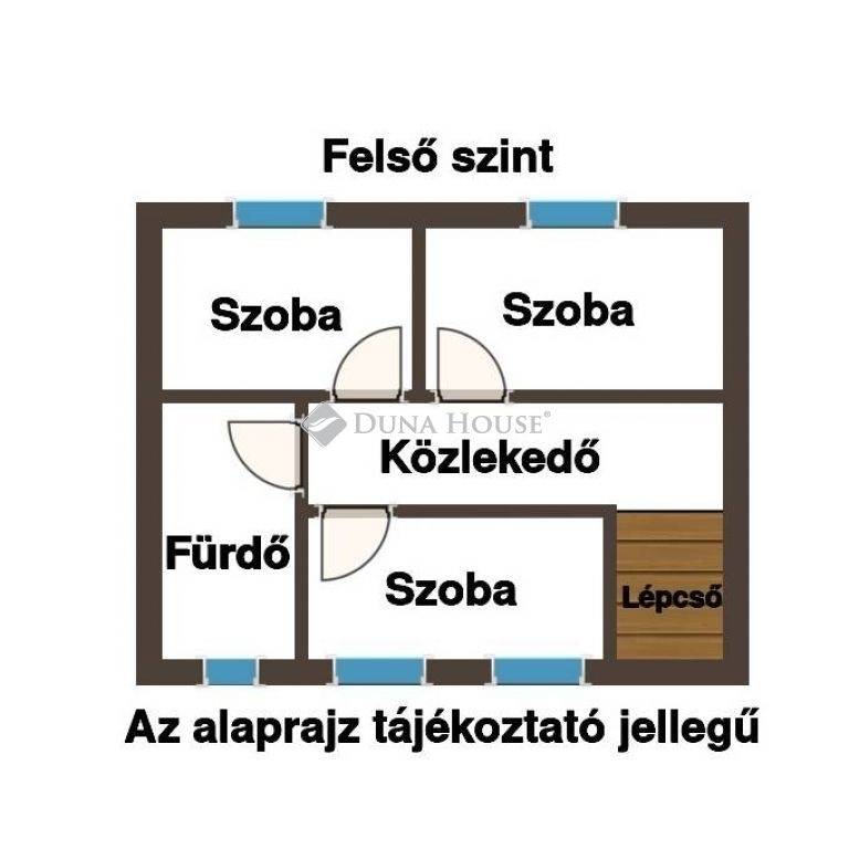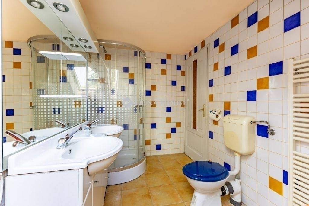A konyhából az emeletre, masszív tölgyfa lépcső vezet. A teljes értékű emeleten 3 szoba, fürdő WC-vel és egy közlekedő került kialakításra.
