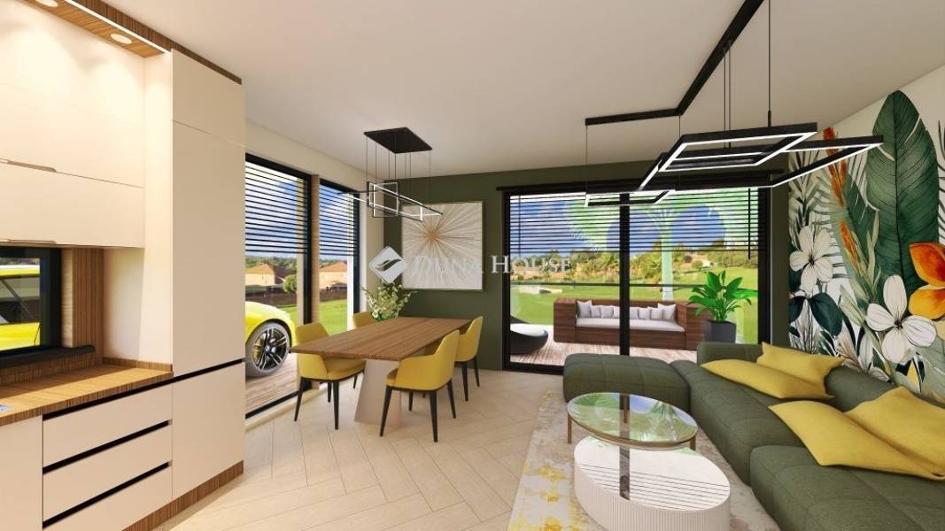 A modern Villa mindössze három luxus kivitelben megálmodott, saját kertrésszel és saját bejárattal rendelkező tágas otthonnak ad helyet, melyekhez önálló elektromos kapun keresztül jutunk be. Burkolt autóbeálló is kialakításra kerül minden lakáshoz.