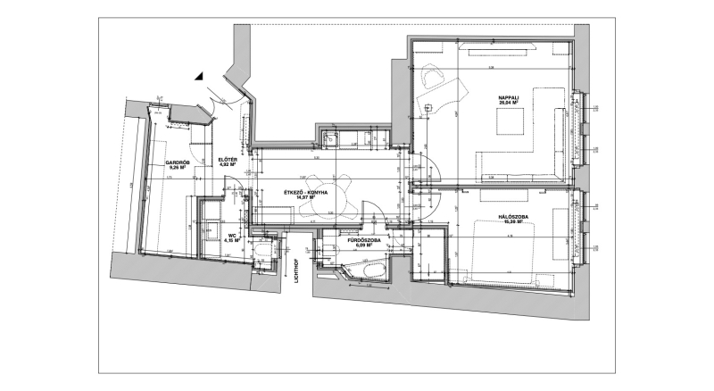 A lakás ideális elosztású. Az előtér nem vesz el sok helyet az alapterületből, mégis látványos a megérkezés. A tágas, Dunára panorámás nappali, a külön elhelyezkedő étkezős konyha, a gyönyörű kádas és zuhanyzós fürdőszoba, a walk-in gardób mind azt az életszínvonalat szolgálja, amire egy ilyen lakás tulajdonosának szüksége van.