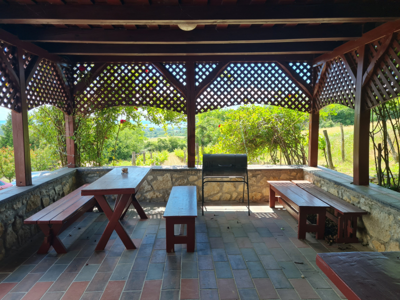 A Balaton-felvidék legnagyobb összefüggő szőlőterületén, a Nivegy-völgyben vált eladóvá ez a teljeskörűen felújított, nyaraló- és vendégházként funkcionáló épület a hozzá tartozó karbantartott és folyamatosan művelt szőlős területtel.