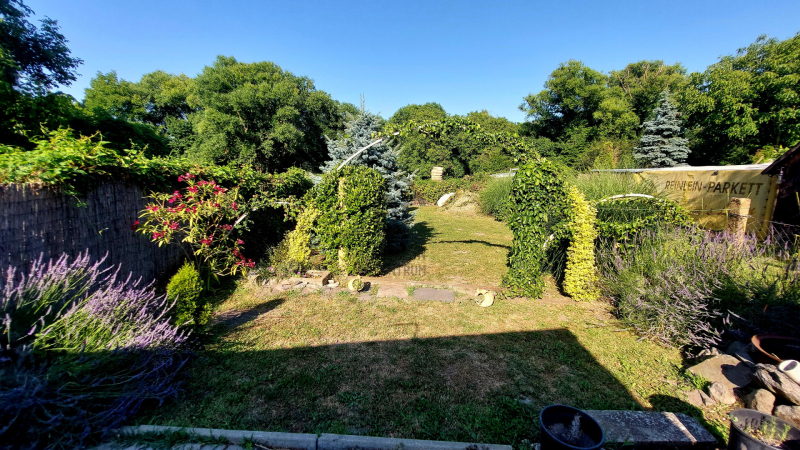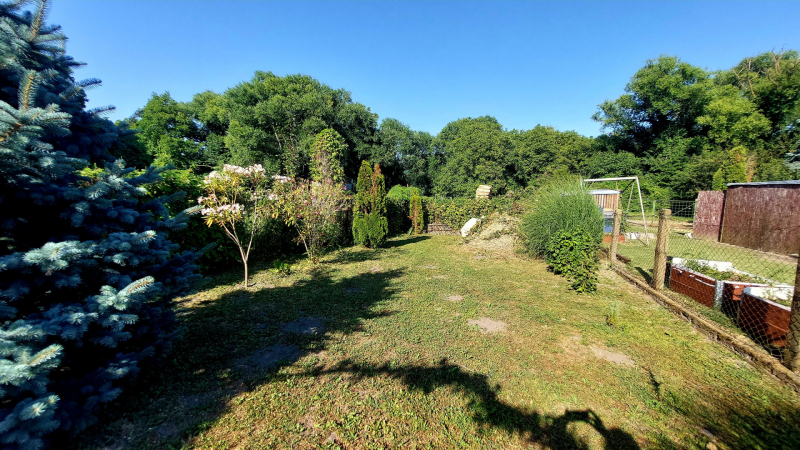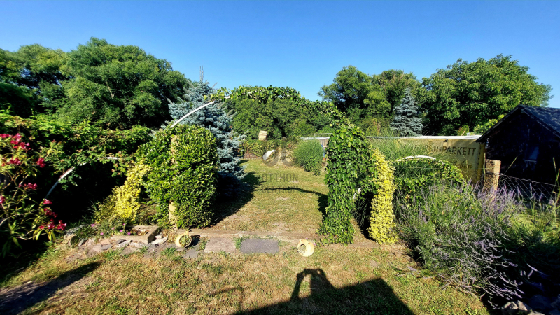 Az ingatlanhoz tartozó telek területe 375 nm, mely parkosított. A telek vége mezővel, réttel határos, így az udvar hangulata a természet ölelését idézi. A kert mérete lehetővé teszi a pihenést, a feltöltődést.