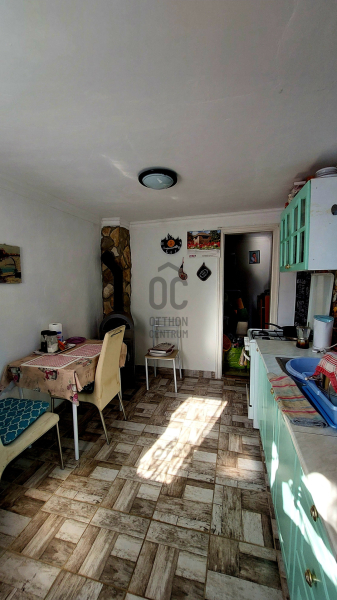 A főépületben egy tágas szoba, egy előtér és egy fürdőszoba található. A konyha és a félszoba a telken található külön kis épületben kapott helyet.