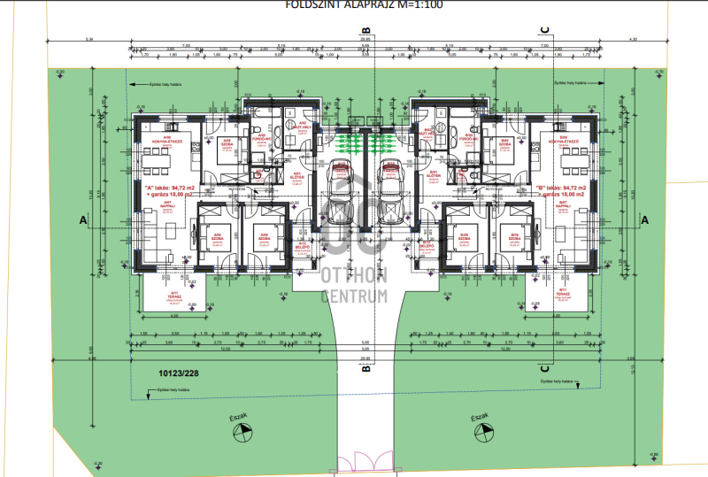 A téglából épült, korszerű energetikájú ikerházat átgondolt elrendezés, letisztult vonalvezetés és kivételes minőség jellemzi. A 95 m²-es lakótérhez egy közvetlen kapcsolatos, 18 m²-es garázs és egy 12 m²-es terasz is tartozik, amely a nappaliból nyílik, így a beltér és a kert összekapcsolódik egy élhető, nyitott élettérré. Három kényelmes hálószoba, amerikai konyhás nappali, fürdőszoba wc-vel, külön vendég-wc és tágas előszoba várja, beépített tárolási lehetőségekkel. Nagyméretű üvegfelületek árasztják el fénnyel a belső tereket, a padlófűtéses hőszivattyús rendszer pedig korszerű és költséghatékony fűtést biztosít.