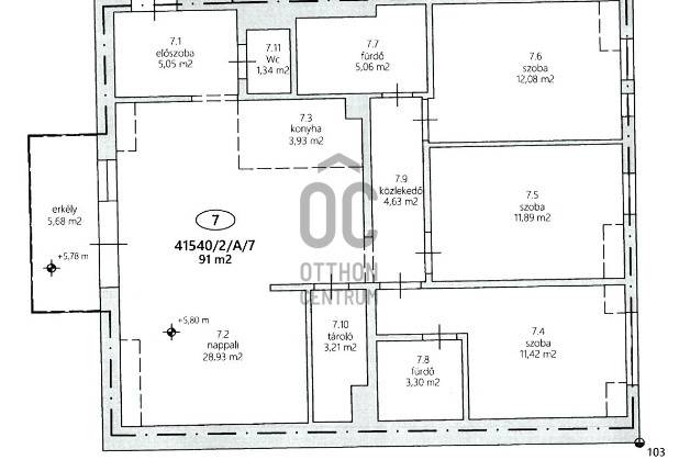 Az ingatlan a tetőtérben található. Normál 2.60-as belmagasság. A szobák utcai nézetűek a nappali kertre néző. Az összes terület a bruttó 98.85 m2-es lakótérből és az 5.53 m2-es terasz felének beszámításából tevődik össze.