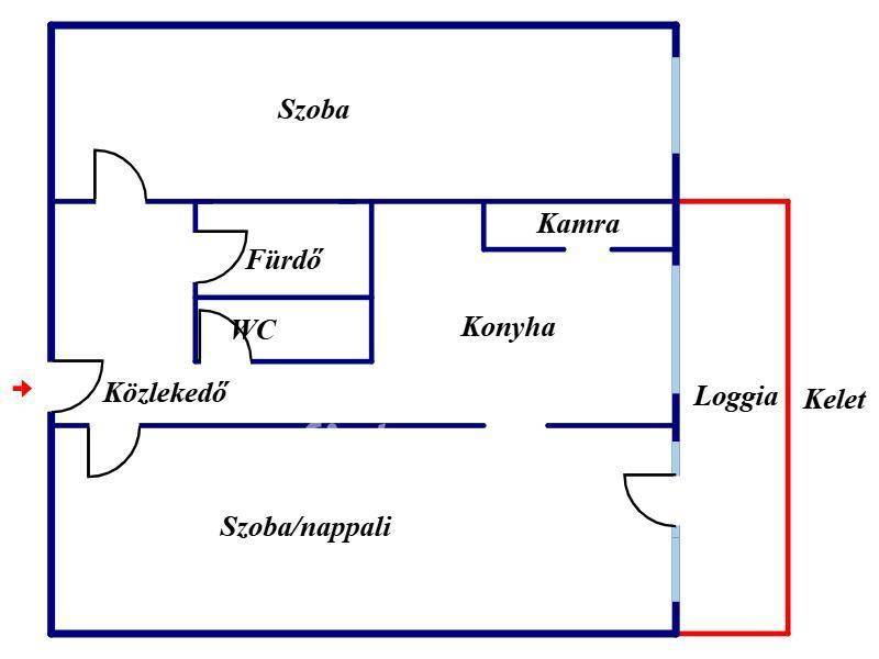 Teljesen felújított, azonnal költözhető ( 2 tágas szoba, konyha, fürdő, WC, kamra, közlekedő, 11 m2-es loggia).