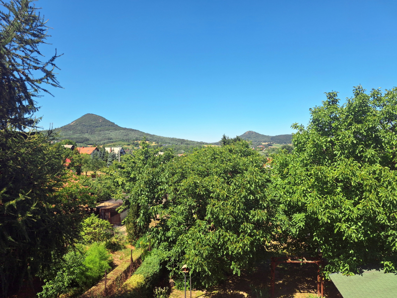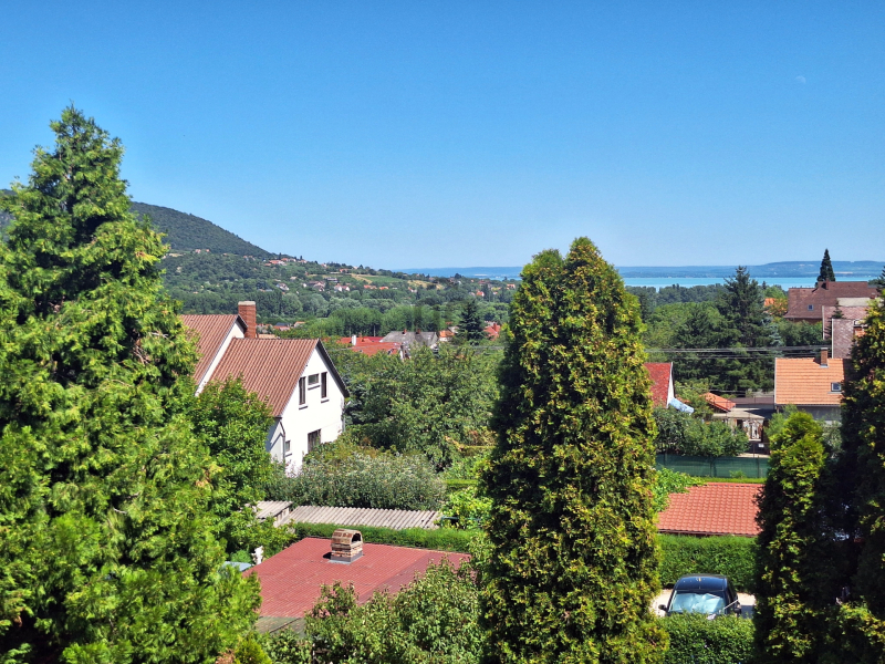 Az erkélyről kitekintve gyönyörű hegyi, valamint rész balatoni panoráma tárul elénk.