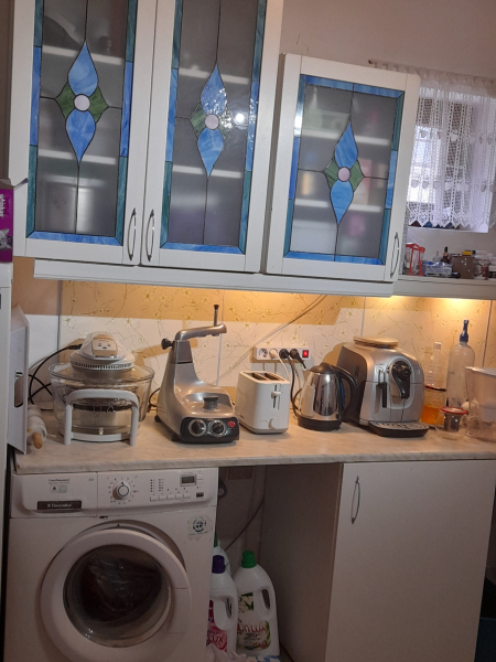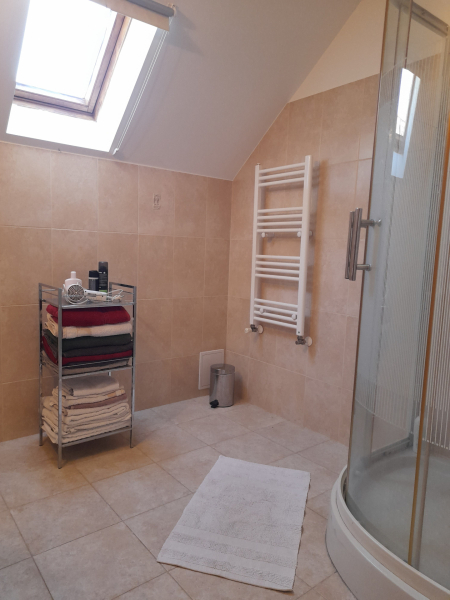 A melegvizet egy 150 literes villanybojler, a felső szinten pedig a kombi gázkazán biztosítja.
