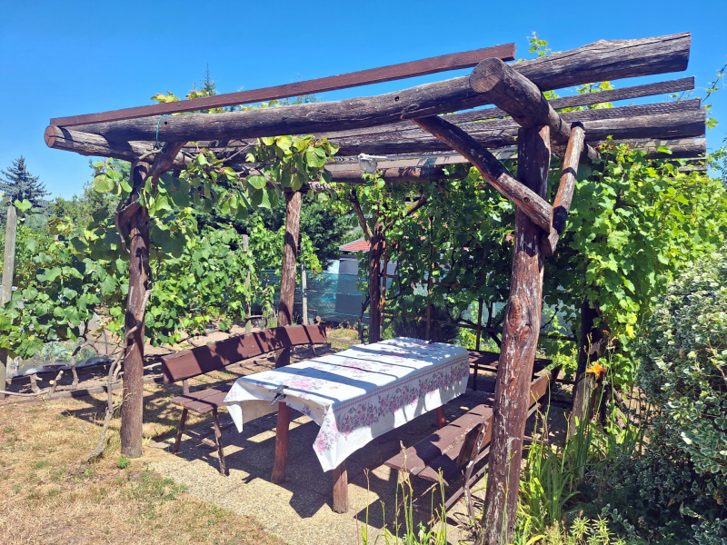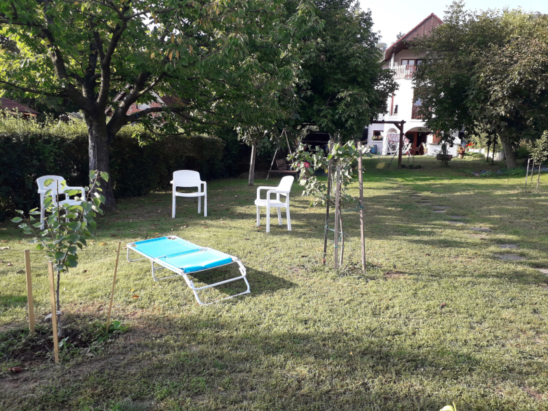 A kertben gyönyörű, bő termést hozó gyümölcsfák sorakoznak, valamint egy veteményes kert is kialakításra került. Ennek gondozásához az itt elhelyezett csöpögtető rendszer nyújt segítséget.