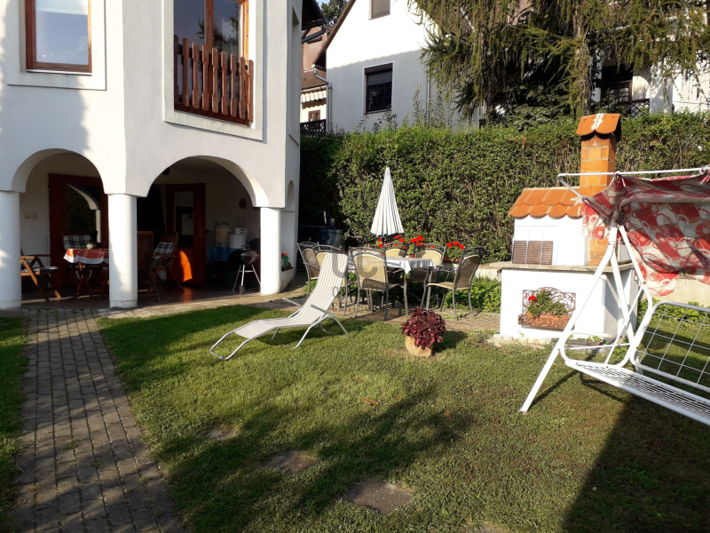 Az erkélyről kitekintve gyönyörű hegyi, valamint rész balatoni panoráma tárul elénk.