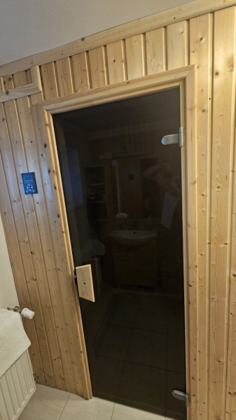 Szuterén szint: 45 m²-es különálló lakrész szaunával, saját konyhával és fürdőszobával – a főépületből és az udvarról is megközelíthető
