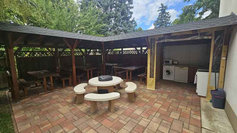 Fedett udvari nyári konyha, bográcsozóhely – 12–20 fős társaságokat is kényelmesen kiszolgál