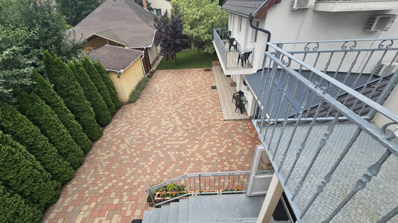 Az emeleti apartmanokhoz tágas erkélyek tartoznak, vendégélmény szempontjából különösen értékesek