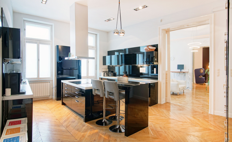 - 28 m²-es konyha, külön 40 m²-es étkező – üzleti vagy családi vacsorákhoz