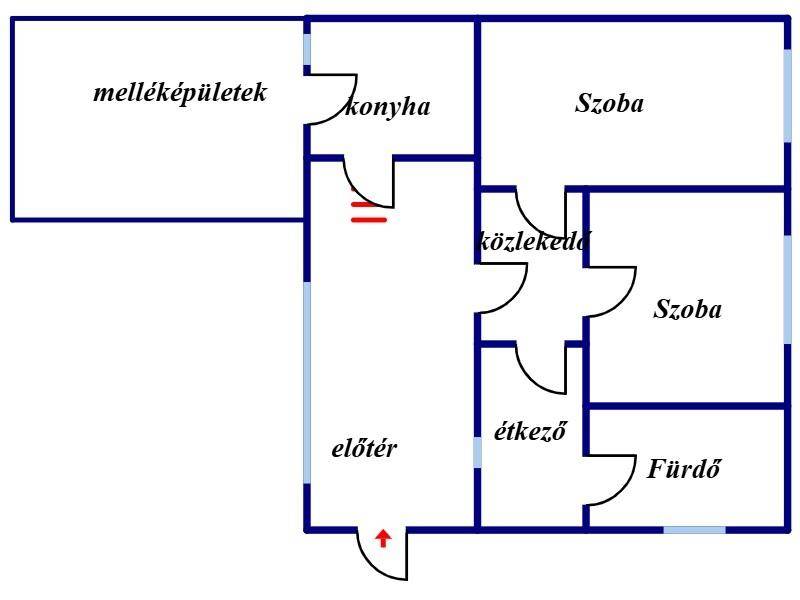 Helyiségei: Előterel, 2 szoba, fürdőszoba, konyha, melléképületek.