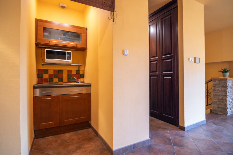 Az emeleten helyet kapott egy tea konyha is, így nem kell mindenért a földszintre rohanni.