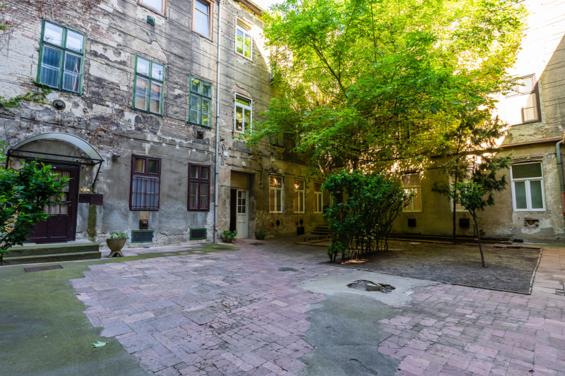 - Kijárat a történelmi hangulatú, pesti stílusú belső udvarra.