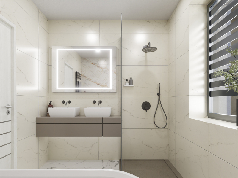 Fürdők: Magas minőségű szaniterek, vízzáró szigetelés