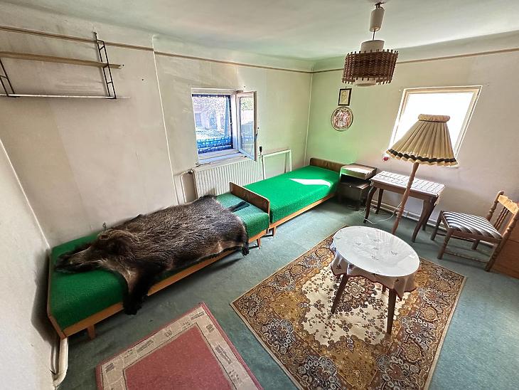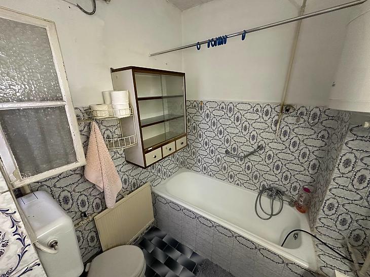Az emeleti rész 40 nm-es, 1 szobás, felújítandó állapotú.